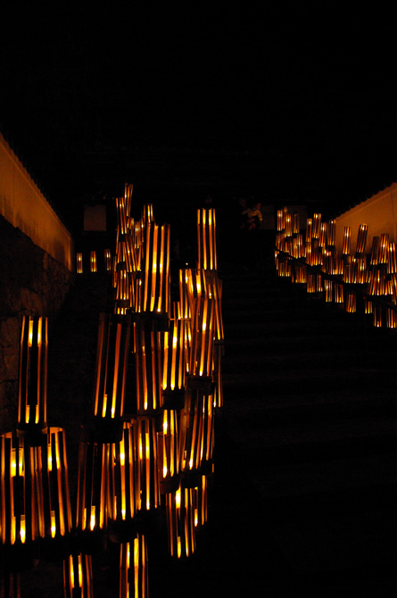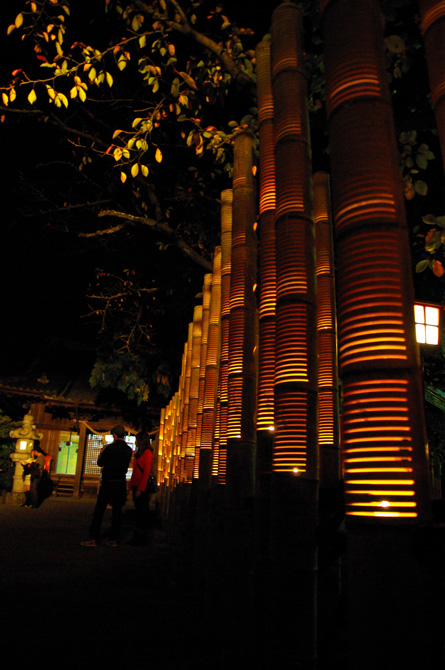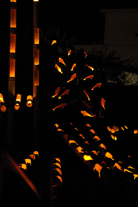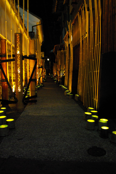 すっかり陽の落ちた城下町臼杵が、竹の灯篭とオブジェで浮かび上がった。